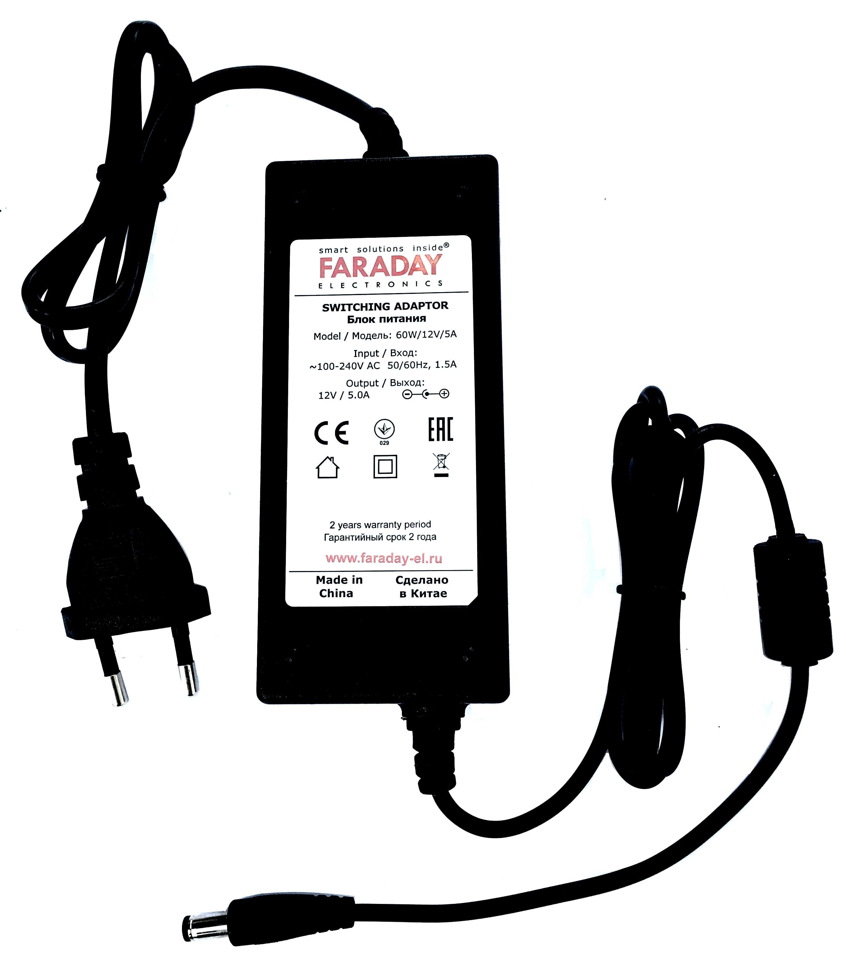 60W/12V/5A. Импульсный блок питания в пластиковом корпусе. FARADAY