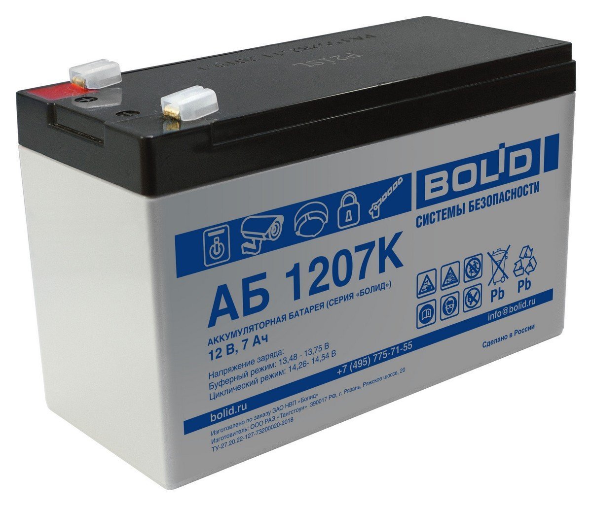 АБ 1207К. Аккумулятор стационарный свинцово-кислотный с регулирующим клапаном. Болид