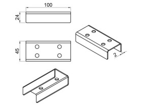 ASP-D50,8-07.L. Стойка с отверстием для фиксатора створки и 2 отверстиями под 90 град. по часовой стрелке относительно створки.. ASP