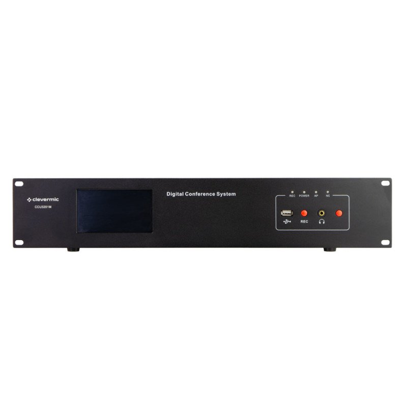 Обзор товара Блок управления конференц-системы CleverMic CCU3201MБлоки CleverMic CCU3201М и CleverMic CCU3203M совместимы с микрофонными пультами CleverMic MU4305D / CleverMic MU4305C и CleverMic MU2205D / CleverMic MU2205C. Для подключения и работы беспроводных микрофонных пультов необходим POE-инжектор CleverMic APT65-POE и точка доступа CleverMic APT651.Блок управления цифровой конференц-системы CleverMic CCU3201M обладает широким спектром функций для эффективного управления конференциями. Он поддерживает проводные и беспроводные конференц-системы, что обеспечивает гибкость выбора оборудования.Технология адаптивного предотвращения помех с 24 доступными сигналами гарантирует высокую антиинтерференционную способность, что особенно важно для крупных мероприятий. Блок обеспечивает низкую задержку звука менее 5 мс и передачу несжатого звука с частотой дискретизации 48K благодаря оригинальной технологии синхронной передачи аудиосигнала по цифровой кольцевой сети.Он также оснащен встроенным высокопроизводительным DSP-процессором, который обеспечивает широкие возможности настройки аудиоматрицы, включая эквалайзер, чувствительность микрофона и громкость. Поддержка одного блока управления конференцией для реализации независимого управления разделами и объединенного аудио 16 конференц-залов. Интерфейсы аудиовхода и выхода позволяют гибко настраивать параметры звука для каждого выходного канала. Система также поддерживает функции записи, голосования, управления микрофонами и другие, делая ее идеальным решением для проведения успешных конференций.Особенности:Поддерживает как проводные, так и беспроводные конференц-системы.Применяет технологию адаптивного предотвращения помех для достижения более высоких антиинтерференционных способностей, с 24 доступными сигналами.Оригинальная технология синхронной передачи аудиосигнала по цифровой кольцевой сети, задержка звука менее 5 мс, передача несжатого звука с частотой дискретизации 48K.Встроенный высокопроизводительный DSP-процессор с функциями аудиоматрицы, эквалайзера, задержки, громкости и других настроек.Поддержка одного блока управления конференцией для реализации независимого управления разделами и объединенного аудио 16 конференц-залов.Интерфейс аудиовхода включает 1 RCA и 2 клеммы Phoenix и 1 разъем XLR. Выходной аудиоинтерфейс включает 1 RCA, 1 XLR и 16 клемм Phoenix. Каждый выходной канал может регулировать такие параметры, как эквалайзер, задержка и громкость.16-канальный режим вывода с разделением ролей, проводные или беспроводные устройства могут независимо выводить звук, поддерживается независимая запись каждого устройства с помощью программного обеспечения для записи, а также поддерживается стыковка устройств синхроперевода голоса для достижения разделения ролей.16-канальный режим вывода одновременной передачи может независимо выводить звук пульта переводчика на внешнее оборудование для записи или контроля.16-канальный режим вывода с фазовым управлением, встроенный матричный аудиопроцессор nx16, реализует функцию 16-канального группового вывода и выводит звук на любой канал с любым соотношением громкости.Блок управления использует сетевой протокол TCP/IP и поддерживает одновременно архитектуру C/S и B/S, которой можно управлять с помощью программного обеспечения ПК или браузера.Возможность управления параметрами аудиоматрицы (включая э